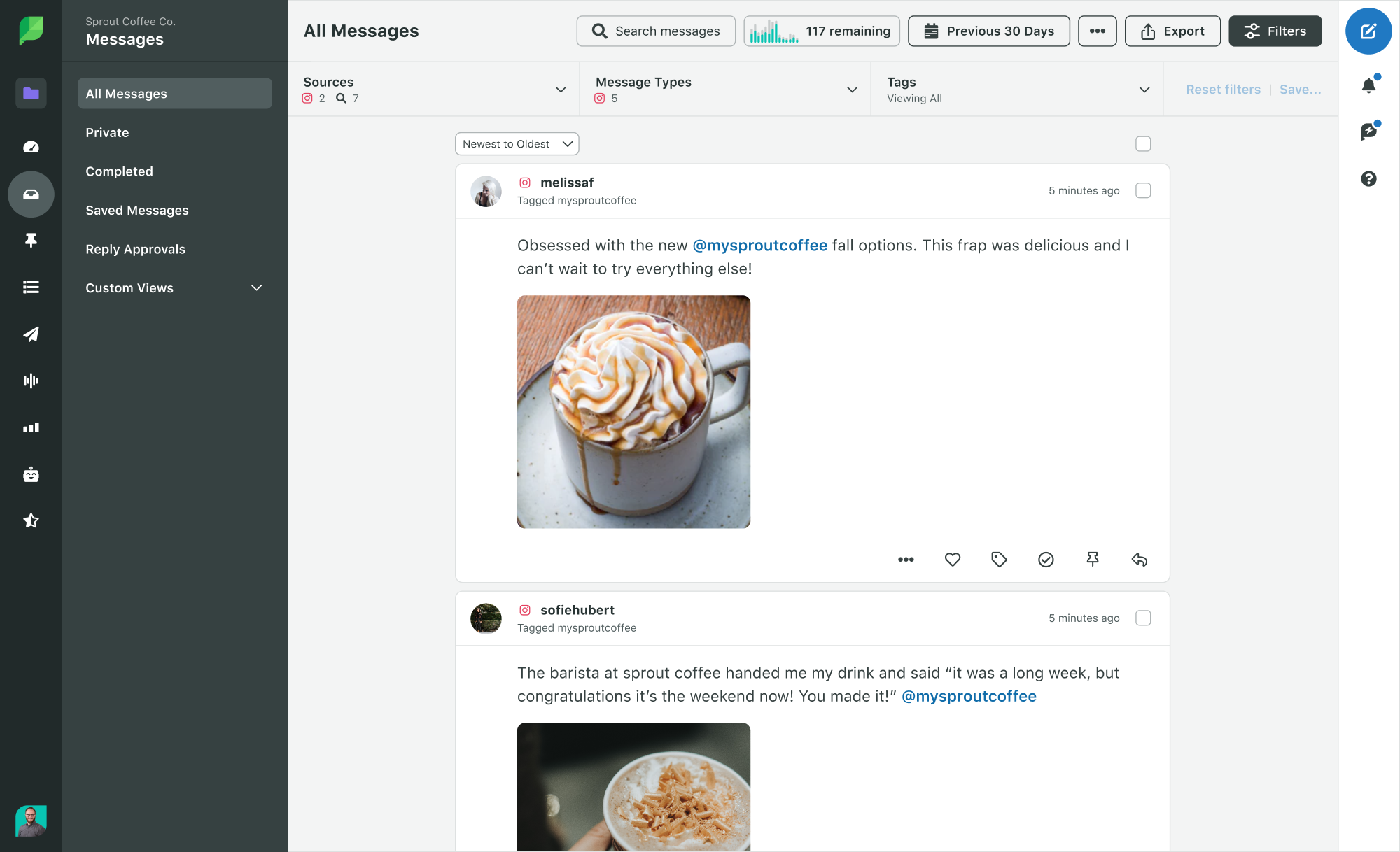 Manage Instagram posts efficiently from a team content calendar with campaign tags and message approval.